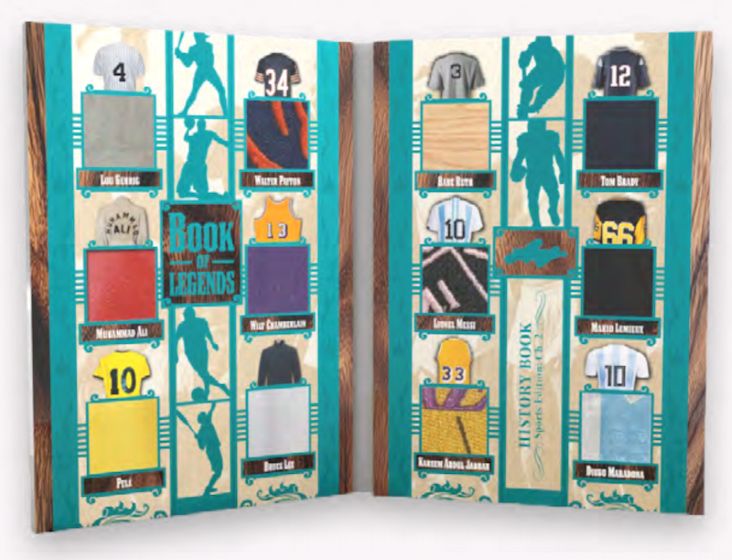 Hobby boxes of the multi-sport product only have two cards, but each of them will be a booklet – many of which include either multiple signatures or multiple memorabilia relics. Legendary names in the product include baseball’s Babe Ruth, Lou Gehrig and Roberto Clemente, football’s Vince Lombardi, and soccer’s Pele.